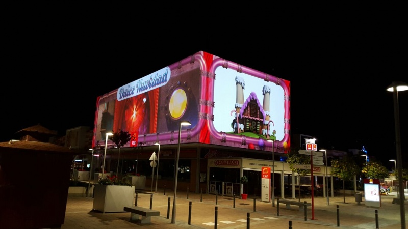 "L" formadun eraikuntza baten sortutako 3D videomaping-a.